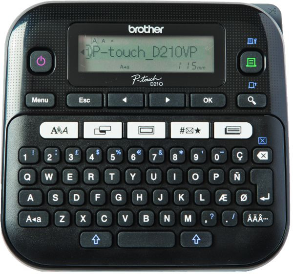 P-touch D210VP kompaktes Beschriftungsgerät für Zuhause und das Homeoffice, kann auch problemlos mobil verwendet werden, QWERTZ-Tastatur, 14 Schriftarten, 825 Zeichen und 617 Symbole, feste und bearbeitbare Vorlagen, 2.400 Zeichen Phrasenspeicher, inklusive Schriftbandkassette, Hartschalenkoffer und Netzadapter 3 Jahre Hersteller-Garantie geeignet für TZe-Schriftbänder in 3,5 mm bis 12 mm