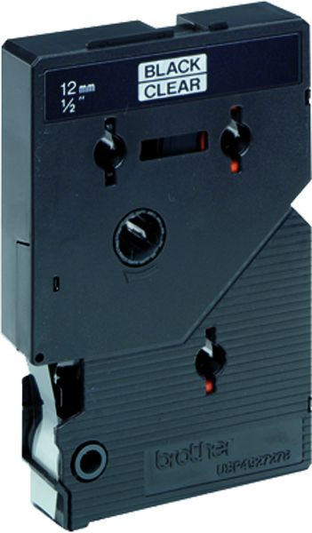 Bandbreite 12 mm, Bandlänge 7,7 m, schwarze Schrift auf weißem Band