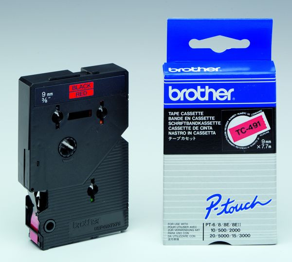 P-Touch Schriftband-Kassette 9mm schwarz auf rot, laminiert, 7,7m