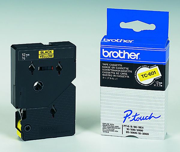 P-Touch Schriftband-Kassette 12mm schwarz auf gelb, laminiert, 7,7m