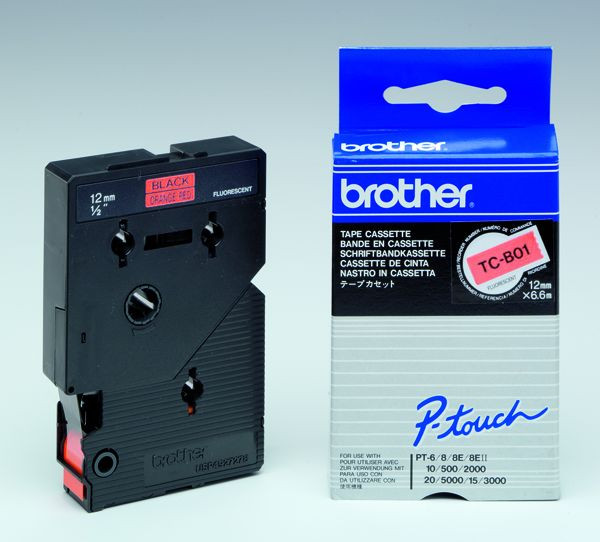 P-Touch Schriftband-Kassette 12mm schwarz auf signal orange, laminiert, 6,7m