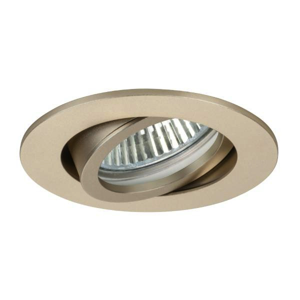 Einbaustrahler, MR16, champagner matt, rund. Ausgeführt in kompakter Bauform für werkzeuglose Schnellmontage zum Deckeneinbau. Ausführung: GX5,3, Montageart: Einbaumontage, Montageort: Deckenmontage, Material: Aluminium, Schutzart raumseitig: nach DIN EN 60529: IP20, Schutzklasse: (EN 61140) III, Spannung: 12 V, Leistung: 13 W, Anzahl der Leuchtmittel / Fassungen: 1 Stück, Verstellbarkeit: schwenkbar, ohne Betriebsgerät, Dimmbar: Abhängig vom Betriebsgerät, Art der Dimmung: Abhängig vom Betriebsgerät.