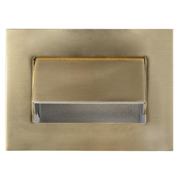 Wandeinbauleuchte, messing, rechteckig. Einbaumontage, Wandmontage Ausführung: Plug&Play, Montageart: Einbaumontage, Montageort: Wandmontage, Material: Messing / Stahl, Schutzart raumseitig: nach DIN EN 60529: IP20, Schutzklasse: (EN 61140) III, Leistung: 3 W, Anzahl der Leuchtmittel / Fassungen: 1 Stück, Farbtemperatur: 3.200 K, Lichtfarbe: weiß, ohne Betriebsgerät, Dimmbar: Ja, Art der Dimmung: Abhängig vom Betriebsgerät.
