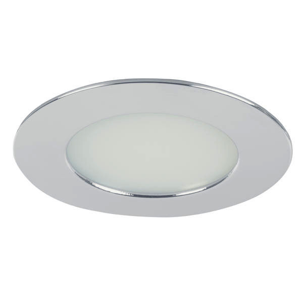 LED-Einbaudownlight, IP44, chrom glänzend, rund. Ausgeführt in kompakter Bauform für werkzeuglose Schnellmontage zum Deckeneinbau. Leuchte optimiert zur Installation in Möbeln und Holzwerkstoffen. Montageart: Einbaumontage, Montageort: Deckenmontage, Material: Aluminiumdruckguss / Kunststoff, Schutzart raumseitig: nach DIN EN 60529: IP44, Schutzklasse: (EN 61140) III, Spannung: 12V, Leistung: 4,5 W, Anzahl der Leuchtmittel / Fassungen: 1 Stück, Lichtstrom: 320 lm, Farbtemperatur: 2.900 K, Abstrahlwinkel: 60°, Verstellbarkeit: nicht verstellbar, ohne Betriebsgerät, Dimmbar: Abhängig vom Betriebsgerät, Art der Dimmung: Abhängig vom Betriebsgerät.