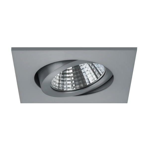 LED-Einbaustrahler, alu matt, quadratisch. Ausgeführt in kompakter Bauform für werkzeuglose Schnellmontage zum Deckeneinbau. Ausführung: Plug&Play, Montageart: Einbaumontage, Montageort: Deckenmontage, Material: Aluminium / Polycarbonat, Schutzart raumseitig: nach DIN EN 60529: IP20, Schutzklasse: (EN 61140) III, Leistung: 7 W, Anzahl der Leuchtmittel / Fassungen: 1 Stück, Lichtstrom: 740 lm, Farbtemperatur: 2.700 K, Abstrahlwinkel: 38°, Verstellbarkeit: schwenkbar, ohne Betriebsgerät, Dimmbar: Abhängig vom Betriebsgerät, Art der Dimmung: Abhängig vom Betriebsgerät.