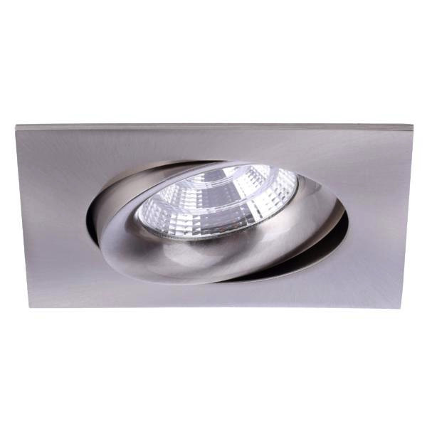 LED-Einbaustrahler, nickel matt, quadratisch. Ausgeführt in kompakter Bauform für werkzeuglose Schnellmontage zum Deckeneinbau. Einbaustrahler geeignet zur direkten Montage auf normal entflammbaren Baustoffen. Wärmedämmung zulässig. Ausführung: Plug&Play, Montageart: Einbaumontage, Montageort: Deckenmontage, Material: Aluminium / Stahl / PMMA, Schutzart raumseitig: nach DIN EN 60529: IP20, Schutzklasse: (EN 61140) III, Leistung: 6 W, Anzahl der Leuchtmittel / Fassungen: 1 Stück, Lichtstrom: 530 lm, Farbtemperatur: 3.000 K, Abstrahlwinkel: 36°, Verstellbarkeit: schwenkbar, ohne Betriebsgerät, Dimmbar: Abhängig vom Betriebsgerät, Art der Dimmung: Abhängig vom Betriebsgerät.