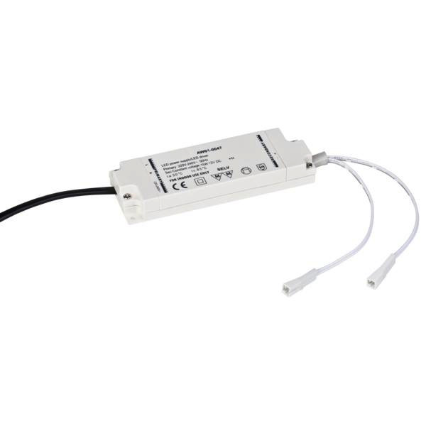 LED-Netzgerät 12 V DC, schaltbar, weiß. Dieses Netzgerät ist durch Sicherungseinrichtungen gegen Überspannung und Kurzschluss sowie thermische und elektrische Überlastung geschützt. Material: Kunststoff, Schutzart raumseitig: nach DIN EN 60529: IP20, Schutzklasse: (EN 61140) II, Spannung: 12V, Leistung: 15 W, Art der Dimmung: schaltbar.