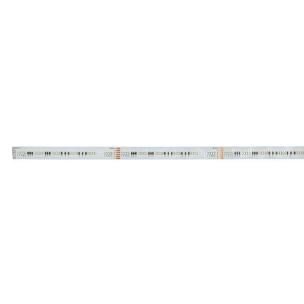 LED-Flexplatine Single RGB+TW, 5 m, 24 W / m, IP00, LED-Weißlicht, 5.700K-2.700K, CRI > 90 LED-Flexplatine zur dekorativen, technischen, sowie effizienten Beleuchtung von Lichtvouten, Linearanwendungen und Hinterleuchtungen, Grund- bzw. Allgemeinbeleuchtung von Räumen, architektonische Anwendungen und für Bereiche, in denen eine hohe Ausleuchtung gewünscht ist, wie z.B. indirekte oder direkte Beleuchtungen, Lichtdecken, Gastronomiebeleuchtungen und vielem mehr.Länge: 5000.0 mm Lampenleistung je Meter: 24.0 W/m, Schutzart raumseitig: IP00, Schutzklasse: III, Spannung: 24V DC, Abstrahlwinkel: 120.0 °, 300 LEDs pro Meter, Chip-Abstand (Short Pitch) : 16,5mm. Zur Individuellen Anwendung kann die LED-Flexplatine alle 100 mm eingekürzt werden. Die maximale Systemlänge von 5.000mm darf mit einer Einspeisung nicht überschritten werden.