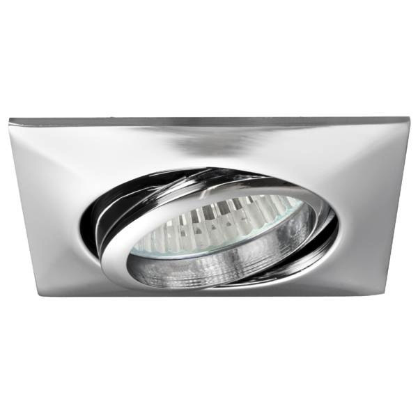 Einbaustrahler, MR16, chrom glänzend, quadratisch. Ausgeführt in kompakter Bauform für werkzeuglose Schnellmontage zum Deckeneinbau. Ausführung: GX5,3, Montageart: Einbaumontage, Montageort: Deckenmontage, Material: Zinkguss / Aluminiumguss, Schutzart raumseitig: nach DIN EN 60529: IP20, Schutzklasse: (EN 61140) III, Spannung: 12V, Leistung: 13 W, Anzahl der Leuchtmittel / Fassungen: 1 Stück, Verstellbarkeit: schwenkbar, ohne Betriebsgerät, Dimmbar: Abhängig vom Betriebsgerät, Art der Dimmung: Abhängig vom Betriebsgerät.