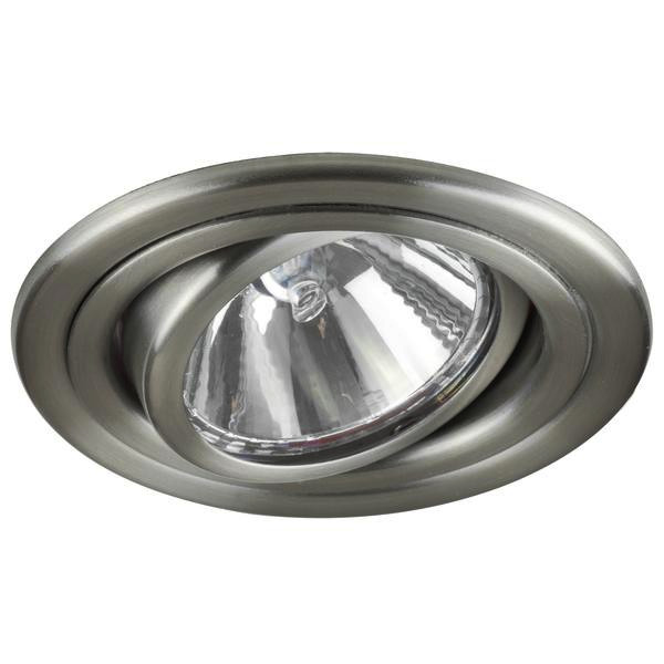 Einbaustrahler, GX5,3, nickel matt, rund. Ausgeführt in kompakter Bauform für werkzeuglose Schnellmontage zum Deckeneinbau. Ausführung: GX5,3, Montageart: Einbaumontage, Montageort: Deckenmontage, Schutzart raumseitig: nach DIN EN 60529: IP20, Schutzklasse: (EN 61140) III, Spannung: 12 V, Leistung: 13 W, Anzahl der Leuchtmittel / Fassungen: 1 Stück, Verstellbarkeit: schwenkbar, ohne Betriebsgerät, Dimmbar: Abhängig vom Betriebsgerät, Art der Dimmung: Abhängig vom Betriebsgerät.