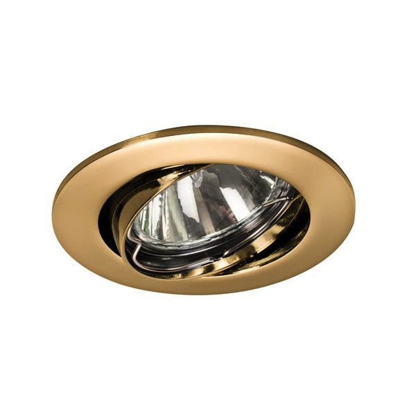 Einbaustrahler, MR16, gold glänzend, rund. Ausgeführt in kompakter Bauform für werkzeuglose Schnellmontage zum Deckeneinbau. Ausführung: GX5,3, Montageart: Einbaumontage, Montageort: Deckenmontage, Material: Aluminium, Schutzart raumseitig: nach DIN EN 60529: IP20, Schutzklasse: (EN 61140) III, Spannung: 12V, Leistung: 13 W, Anzahl der Leuchtmittel / Fassungen: 1 Stück, Verstellbarkeit: schwenkbar, ohne Betriebsgerät, Dimmbar: Abhängig vom Betriebsgerät, Art der Dimmung: Abhängig vom Betriebsgerät.