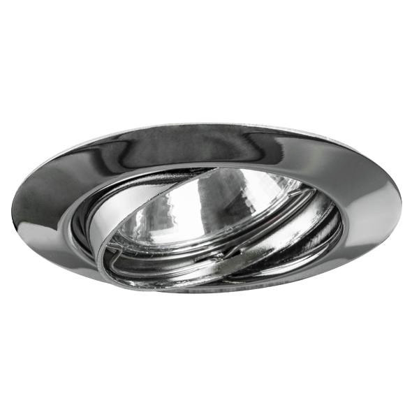 Einbaustrahler, MR16, chrom glänzend, rund. Ausgeführt in kompakter Bauform für werkzeuglose Schnellmontage zum Deckeneinbau. Ausführung: GX5,3, Montageart: Einbaumontage, Montageort: Deckenmontage, Material: Stahl, Schutzart raumseitig: nach DIN EN 60529: IP20, Schutzklasse: (EN 61140) III, Spannung: 12 V, Leistung: 13 W, Anzahl der Leuchtmittel / Fassungen: 1 Stück, Lichtfarbe: weiß, Verstellbarkeit: schwenkbar, ohne Betriebsgerät, Dimmbar: Abhängig vom Betriebsgerät, Art der Dimmung: Abhängig vom Betriebsgerät.