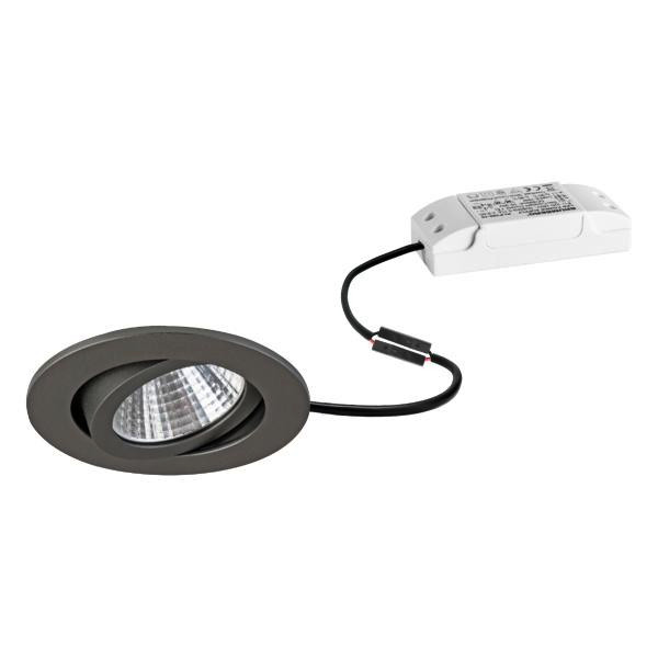 LED-Einbaustrahlerset, IP65, schaltbar, titan matt, rund. Ausgeführt in kompakter Bauform für werkzeuglose Schnellmontage zum Deckeneinbau. Set inkl. Konverter für 230 V-Netzspannung, schaltbar, Maße Konverter: L 71 x B 36 x H 22 mm Montageart: Einbaumontage, Montageort: Deckenmontage, Material: Aluminium / Stahl / Silikonkautschuk / Polycarbonat, Schutzart raumseitig: nach DIN EN 60529: IP65, Schutzklasse: (EN 61140) II, Spannung: 230V AC 50Hz, Leistung: 6 W, Anzahl der Leuchtmittel / Fassungen: 1 Stück, Lichtstrom: 730 lm, Farbtemperatur: 3.000 K, Abstrahlwinkel: 38°, Verstellbarkeit: schwenkbar, Mit Betriebsgerät: Ja, Dimmbar: Nein, Art der Dimmung: schaltbar.