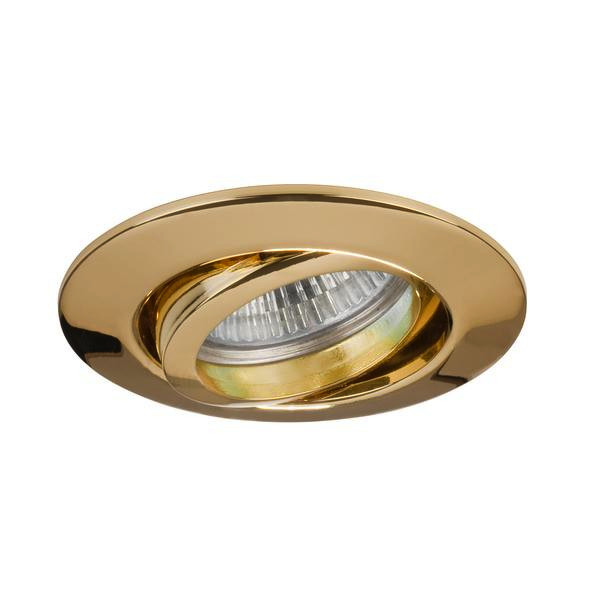 Einbaustrahler, GU10, gold glänzend, rund. Ausgeführt in kompakter Bauform für werkzeuglose Schnellmontage zum Deckeneinbau. Inkl. Bügel mit GU10-Fassung zur normgerechten Zugentlastung. Ausführung: GU10, Montageart: Einbaumontage, Montageort: Deckenmontage, Material: Zinkguss / Aluminiumguss, Schutzart raumseitig: nach DIN EN 60529: IP20, Schutzklasse: (EN 61140) II, Spannung: 230V AC 50Hz, Leistung: 10 W, Anzahl der Leuchtmittel / Fassungen: 1 Stück, Verstellbarkeit: schwenkbar, ohne Betriebsgerät, Art der Dimmung: sonstige.