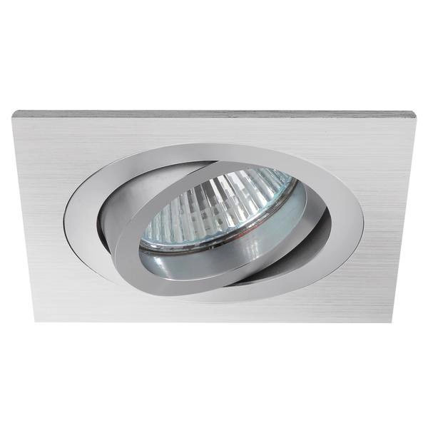 Einbaustrahler, GU10, dreh- und schwenkbar, alu matt, quadratisch. Ausgeführt in kompakter Bauform für werkzeuglose Schnellmontage zum Deckeneinbau. Inkl. Bügel mit GU10-Fasung zur normgerechten Zugentlastung. Ausführung: GU10, Montageart: Einbaumontage, Montageort: Deckenmontage, Material: Aluminium, Schutzart raumseitig: nach DIN EN 60529: IP20, Schutzklasse: (EN 61140) II, Spannung: 230V AC 50Hz, Leistung: 10 W, Anzahl der Leuchtmittel / Fassungen: 1 Stück, Verstellbarkeit: drehbar und schwenkbar, ohne Betriebsgerät, Art der Dimmung: sonstige.