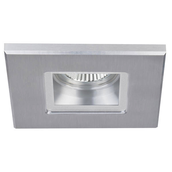 Deckeneinbauleuchte, aluminium, quadratisch. Ausgeführt in kompakter Bauform für werkzeuglose Schnellmontage zum Deckeneinbau. Ausführung: GU10, Montageart: Einbaumontage, Montageort: Deckenmontage, Material: Aluminium, Schutzart raumseitig: nach DIN EN 60529: IP44, Schutzklasse: (EN 61140) II, Spannung: 230V AC 50Hz, Leistung: 50 W, Anzahl der Leuchtmittel / Fassungen: 1 Stück, Verstellbarkeit: schwenkbar, ohne Betriebsgerät, Art der Dimmung: sonstige.