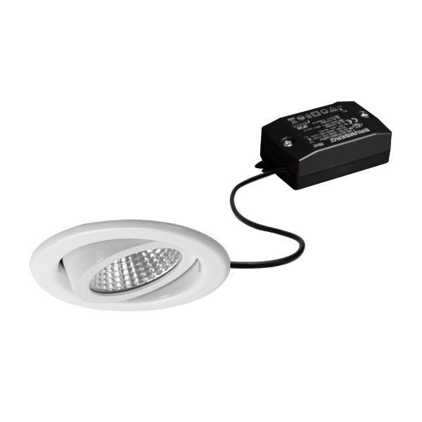 LED-Einbaustrahlerset, schaltbar, weiß glänzend, rund. Ausgeführt in kompakter Bauform für werkzeuglose Schnellmontage zum Deckeneinbau. Set inkl. Konverter für 230 V-Netzspannung, schaltbar, Maße Konverter: L 68 x B 35 x H 21 mm Montageart: Einbaumontage, Montageort: Deckenmontage, Material: Edelstahl / Aluminium / Kunststoff, Schutzart raumseitig: nach DIN EN 60529: IP20, Schutzklasse: (EN 61140) II, Spannung: 230V AC 50Hz, Leistung: 6 W, Anzahl der Leuchtmittel / Fassungen: 1 Stück, Lichtstrom: 640 lm, Farbtemperatur: 3.000 K, Abstrahlwinkel: 38°, Verstellbarkeit: schwenkbar, Mit Betriebsgerät: Ja, Dimmbar: Nein, Art der Dimmung: schaltbar.