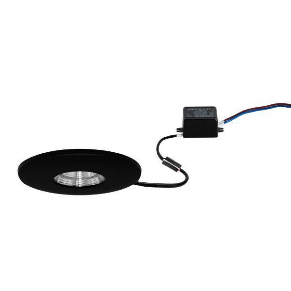 | Kurzbeschreibung | LED-Einbaudownlight 230 V AC, 50 Hz, 3 W, 38°, 3.000 K, rund, starr, schwarz ma |