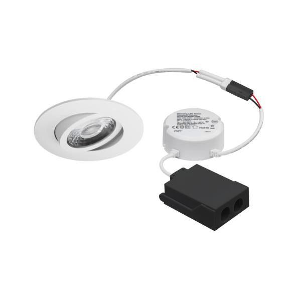 | Kurzbeschreibung | LED-Einbaustrahler 230 V AC, 50 Hz, 8 W, 36°, 3.000 K, rund, schwenkbar, weiss |