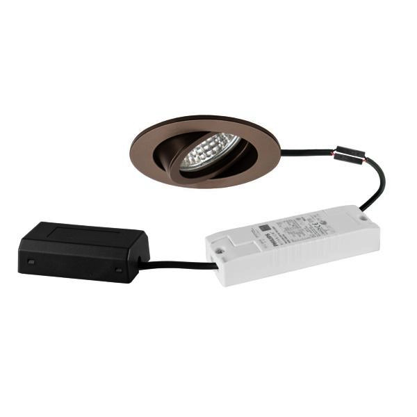 LED-Einbaustrahlerset, DALI dimmbar, mit Anschlussbox, braunmetallic, rund. Ausgeführt in kompakter Bauform für werkzeuglose Schnellmontage zum Deckeneinbau. Set inkl. Konverter für 230 V-Netzspannung, DALI-2 dimmbar, ohne Nachglimm-Effekt, Maße Konverter: L 130 x B 42 x H 22 mm Montageart: Einbaumontage, Montageort: Deckenmontage, Material: Aluminium / Glas / Kunststoff, Schutzart raumseitig: nach DIN EN 60529: IP20, Schutzklasse: (EN 61140) II, Spannung: 230V AC 50Hz, Leistung: 6 W, Lichtstrom: 730 lm, Farbtemperatur: 3.000 K, Abstrahlwinkel: 38°, Verstellbarkeit: schwenkbar, Mit Betriebsgerät: Ja, Dimmbar: Ja, Art der Dimmung: DALI-2.