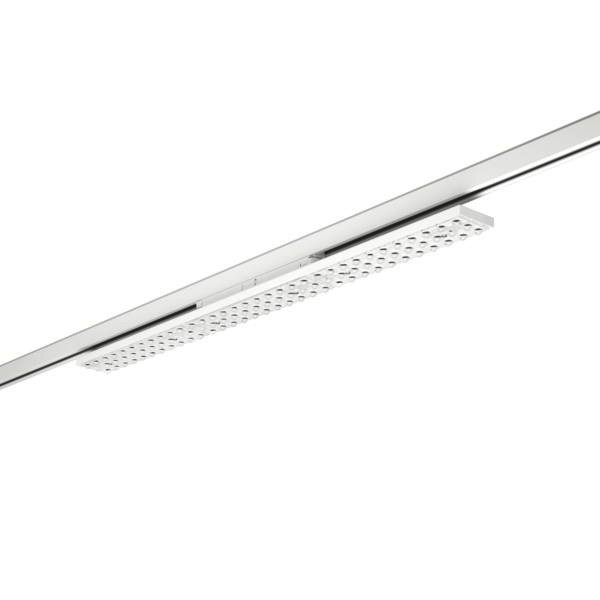 LED-Schienenstrahler, drehbar, schaltbar, strukturweiß, rechteckig. Stromschienenmontage, Deckenmontage Ausführung: LED, Montageart: Stromschienenmontage, Montageort: Deckenmontage, Material: Stahl / Kunststoff, Schutzart raumseitig: nach DIN EN 60529: IP20, Schutzklasse: (EN 61140) II, Spannung: 230V AC 50Hz, Leistung: 50 W, Anzahl der Leuchtmittel / Fassungen: 1 Stück, Lichtstrom: 7.500 lm, Farbtemperatur: 4.000 K, Lichtfarbe: weiß, Abstrahlwinkel Längs: 97°, Abstrahlwinkel Quer: 91°, Verstellbarkeit: drehbar, Mit Betriebsgerät: Ja, Dimmbar: Nein, Art der Dimmung: schaltbar.