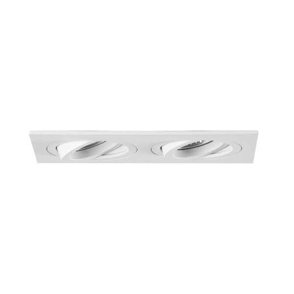 Einbaugehäuse, rechteckig, bündig, 2-fach, mit Modulhalterungen bündig, schwenkbar, ohne LED-Module, strukturweiß, quadratisch. Ausgeführt in kompakter Bauform für werkzeuglose Schnellmontage zum Deckeneinbau. Alle Brumberg MR16-LED-Module sind für die Einbaueinheit M1 bis zur maximal angegebenen Leistung einsetzbar. Die Einbautiefe der Leuchte richtet sich nach den jeweils verwendeten LED-Modulen. Die LED-Module sind im Lieferumfang der Einbaueinheit nicht enthalten. Ausführung: ohne Fassung, Montageart: Einbaumontage, Montageort: Deckenmontage, Material: Aluminium, Schutzart raumseitig: nach DIN EN 60529: IP20, Schutzklasse: (EN 61140) III, Leistung: 13 W, Anzahl der Leuchtmittel / Fassungen: 2 Stück, Verstellbarkeit: schwenkbar, ohne Betriebsgerät, Dimmbar: Abhängig vom Betriebsgerät, Art der Dimmung: Abhängig vom Betriebsgerät.
