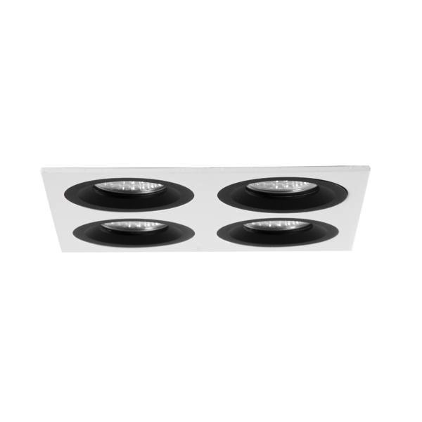 Einbaugehäuse, quadratisch, bündig, 4-fach, mit Modulhalterungen bündig, starr, IP44, ohne LED-Module, außen strukturweiß / innen strukturschwarz, quadratisch. Ausgeführt in kompakter Bauform für werkzeuglose Schnellmontage zum Deckeneinbau. Alle Brumberg MR16-LED-Module sind für die Einbaueinheit M1 bis zur maximal angegebenen Leistung einsetzbar. Die Einbautiefe der Leuchte richtet sich nach den jeweils verwendeten LED-Modulen. Die LED-Module sind im Lieferumfang der Einbaueinheit nicht enthalten. Ausführung: ohne Fassung, Montageart: Einbaumontage, Montageort: Deckenmontage, Material: Aluminium, Schutzart raumseitig: nach DIN EN 60529: IP44, Schutzklasse: (EN 61140) III, Leistung: 13 W, Anzahl der Leuchtmittel / Fassungen: 4 Stück, Verstellbarkeit: nicht verstellbar, ohne Betriebsgerät, Dimmbar: Abhängig vom Betriebsgerät, Art der Dimmung: Abhängig vom Betriebsgerät.