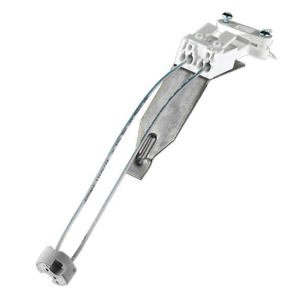 Bügel mit Fassung GX5,3, mit Zugentlastung. Zur Steckbefestigung mit 2-poliger Steckklemme 2 x 2,5 mm² und Zugentlastung. Ausführung: GX5,3, Material: Stahl / Kunststoff / Keramik, Schutzart raumseitig: nach DIN EN 60529: IP20, Schutzklasse: (EN 61140) III, Spannung: 12 V, Art der Dimmung: sonstige.