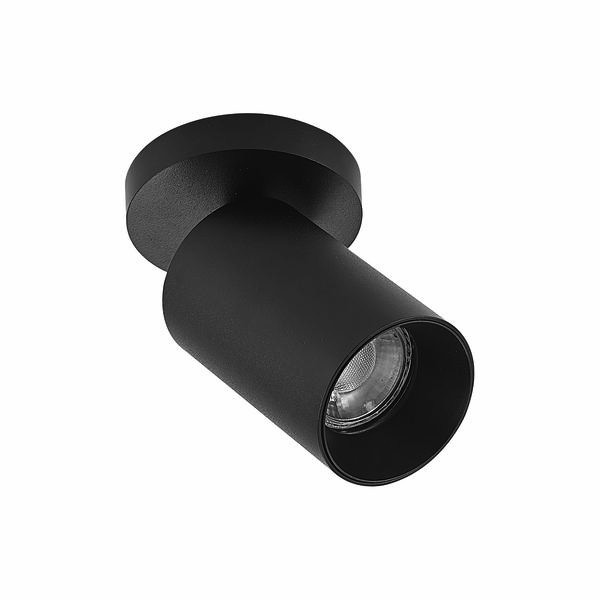 Decken-Anbauleuchte, für GU10-LED-Retrofit-Lampe, mit Metallgehäuse und Metallschirm, strukturschwarz, rund. Ausführung in kompakter Bauform für die harmonische Implementierung in stimmige, architektonische Raumkonzepte. Ausführung: GU10, Montageart: Anbaumontage, Montageort: Deckenmontage, Material: Aluminium, Schutzart raumseitig: nach DIN EN 60529: IP20, Schutzklasse: (EN 61140) I, Spannung: 230V AC 50Hz, Leistung: 8 W, Anzahl der Leuchtmittel / Fassungen: 1 Stück, Verstellbarkeit: drehbar und schwenkbar, ohne Betriebsgerät, Art der Dimmung: sonstige.