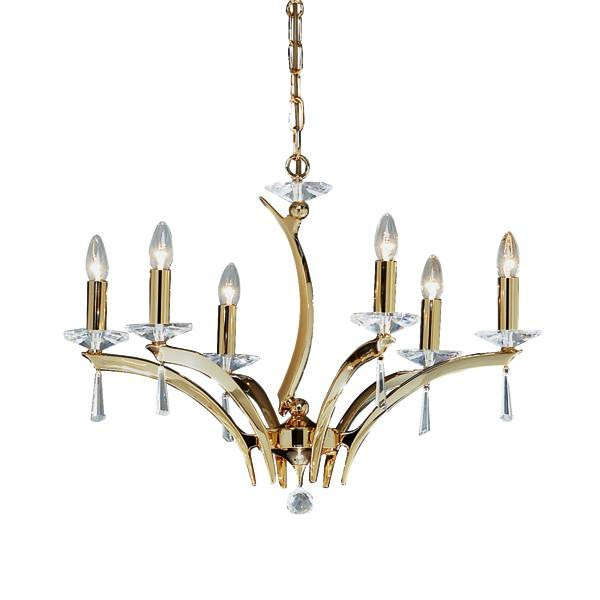 Pendelleuchte gold glänzend, mit Kristallen, gold glänzend, sonstige. Ausführung in kompakter Bauform für die harmonische Implementierung in stimmige, architektonische Raumkonzepte. Anbau-Pendelleuchte, mit Kristallen. Ausführung: E14, Montageart: Anbaumontage, Montageort: Deckenmontage, Material: Messingguss / Kristall, Schutzart raumseitig: nach DIN EN 60529: IP20, Schutzklasse: (EN 61140) I, Spannung: 230V AC 50Hz, Leistung: 40 W, Anzahl der Leuchtmittel / Fassungen: 6 Stück, ohne Betriebsgerät, Art der Dimmung: sonstige.