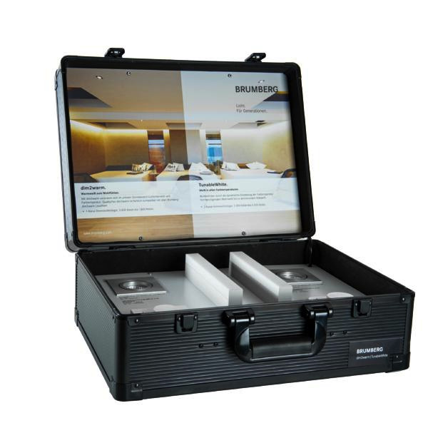 Musterkoffer dim2warm/ TunableWhite. Material: Aluminium / Kunststoff.