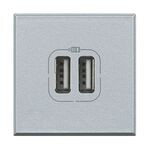 Axolute USB-Ladestation mit 2 Ausgängen Typ C in 2-moduliger Ausführung, 1500 mA Ladestrom pro Ausgang, 3000 mA Ladestrom wenn nur ein Ausgang verwendet wird, Farbe Aluminium