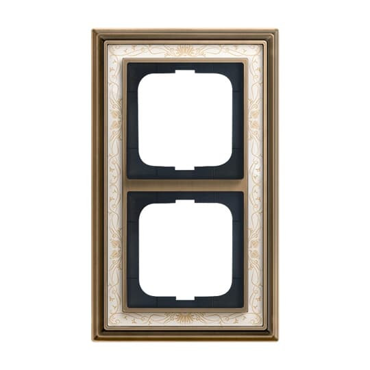 | Kurzbeschreibung | Abdeckrahmen 2-fach Messing antik Dekor elfenbeinweiß - Busch-dynasty® |