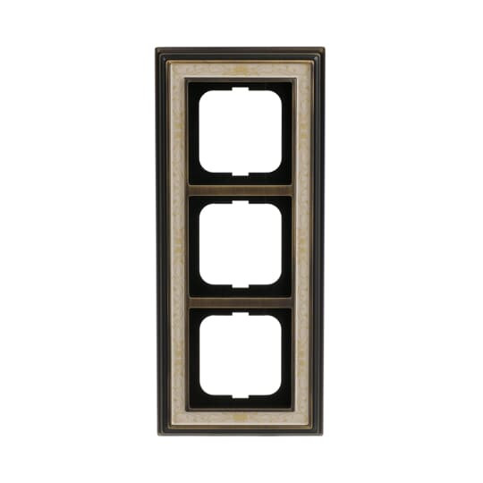 | Kurzbeschreibung | Abdeckrahmen 3-fach Messing antik Dekor elfenbeinweiß - Busch-dynasty® |