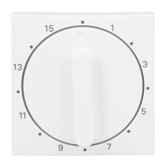 | Kurzbeschreibung | Zentralscheibe mit Aufdruck 0 ... 15 min für Zeitschaltuhr, Drehgriff alpinweiß |