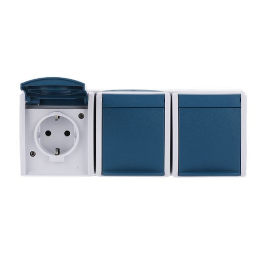 | Kurzbeschreibung | SCHUKO® Dreifachsteckdose mit Klappdeckel 16 A grau/blaugrün - ocean® |