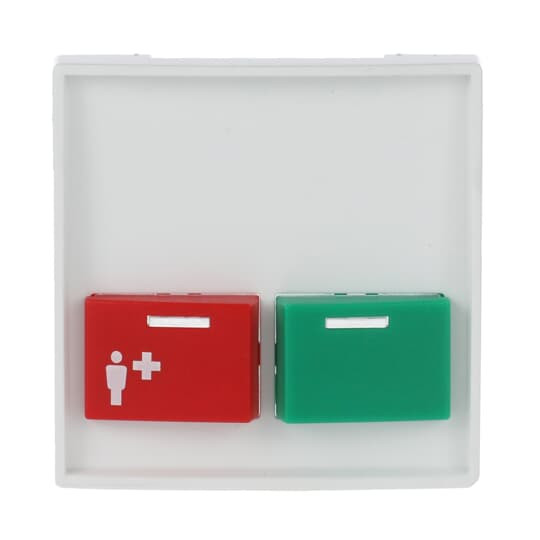 | Kurzbeschreibung | Zentralscheibe Ruf-/Abstelltaster / rot/grün 2-fach studioweiß - Plattform 63 |