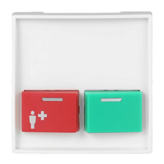 | Kurzbeschreibung | Zentralscheibe Ruf-/Abstelltaster / rot/grün 2-fach alpinweiß - |