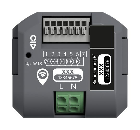 6-fach Unterputz-Binäreingang wireless zum Auswerten von konventionellen Schaltern/Tastern oder Hilfskontakten.