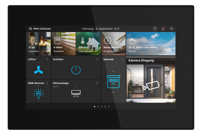 Zentrales 7“ Bedienpanel für Busch-Welcome® 2-Draht oder Busch-Welcome IP mit eingebautem Busch-free@home® wireless System AccessPoint.