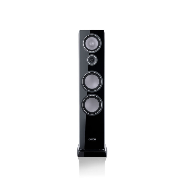3-Wege Bassreflex Standlautsprecher, Nenn- / Musikbelastbarkeit: 180 / 340 Watt, Übertragungsbereich: 20…40.000 Hz, Übergangsfrequenz: 170 / 3.000 Hz, Tieftonchassis: 2 x 192 mm, Titanium-Graphit (Wave-Sicke), Mitteltonchassis: 1 x 174 mm Titanium-Graphit (Wave-Sicke), Hochtonchassis: 1 x 25 mm Keramik, Impedanz: 4...8 Ohm, Abmessungen (BxHxT) 29 x 110,5 x 38 cm