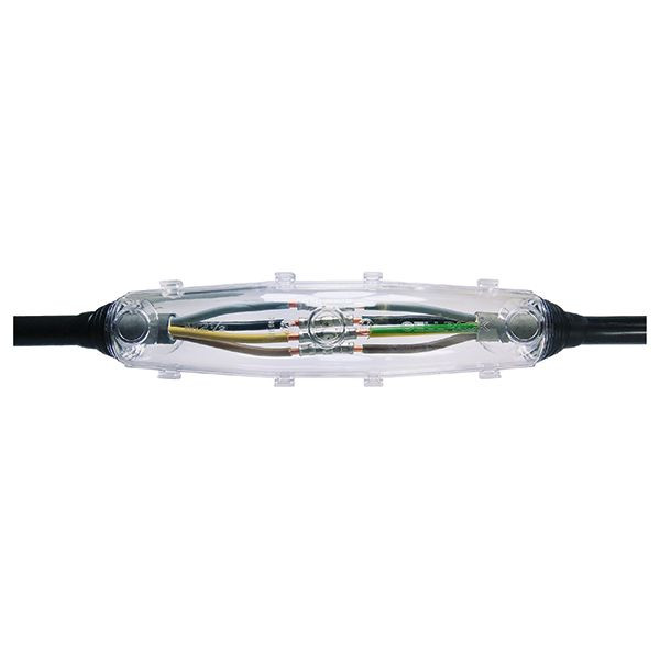 Universell verwendbar zum Verbinden von Kunststoffkabeln mit Isolierungen aus PVC, PE, VPE und EPR (z. B. N(A)YY, NYM, TT). Mit hydrolysebeständigem PUR-Gießharz EG. Geeignet für Press- oder Schraubverbinder auf Kupfer- und Aluminiumleiter.