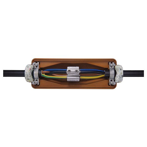 | Kurzbeschreibung | Gießharz-Verbindungsmuffe, mit integrierter Zugentlastung für Kunststoffkabel |