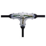 Abzweig 90° N (A) YY T Spannungsebene U0/U (Um) 0,6/1 (1,2) kV Gießharz-Abzweigmuffe für Kunststoffkabel und Leitungen. Geeignet für Einzelabzweigklemmen auf Kupfer- und Aluminiumleiter.