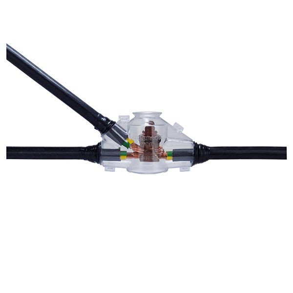 Abzweig 30° N (A) YY Verwendbar zum Abzweig einadriger Kabel z. B. Leitungen zum kathodischen Korrosionsschutz vor chemischen und elektrochemischen Reaktionen in Erdreich und Wasser. Rohrleitungen, elektrische Versorgungsleitungen und andere Metallkonstruktionen werden wirtschaftlicher und effektiver geschützt als durch passiven Korrosionsschutz. Mit hydrolysebeständigem PUR-Gießharz EG. Geeignet für Einzelabzweigklemmen auf Kupfer- und Aluminiumleiter.