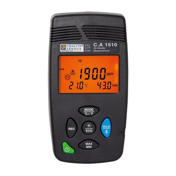 Das tragbare Raumluft-Messgerät C.A 1510 ist einfach und bedienerfreundlich zu benutzen und es speichert die gemessenen Parameter. Es ermittelt die Luftqualität in Räumen auf der Grundlage der CO2-Konzentration alleine oder anhand der drei gemessenen physikalischen Größen.