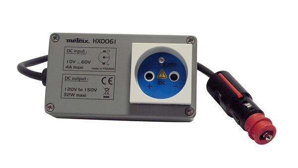 Zubehör für SCOPIX Oszilloskope. Anschluss zum Aufladen des Akkus über den Zigarettenanschluss im Fahrzeug. Besonders sinnvoll für Techniker, die viel unterwegs sind. Eingangsspannung 10 VDC bis 60 VDC. Ausgangsspannung 120 VDC bis 150 VDC ± 5 V. Max. 32 W abgegebene Leistung.