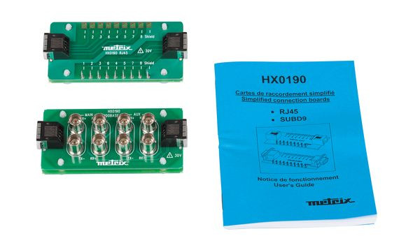 Ersatzteil bzw. Zubehör für SCOPIX BUS-Oszilloskope OX 9302-BUS / OX 7202-BUS / OX 7204-BUS. Set bestehend aus 3 Anschlusskarten mit Steckern RJ45, SUBD9 und 100NASE-T auf BNC. Zur Vereinfachung des Anschlusses an den Bus.