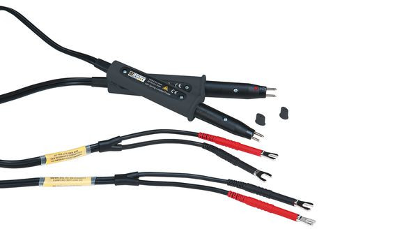 Zubehör für die Messung kleiner Widerstände mit höchster Präzision mit CHAUVIN ARNOUX Micro-Ohmmetern. Einziehbare Prüfspitzen gewährleisten auch bei unebenen Flächen einwandfreien Kontakt am Messpunkt. Drehbare Prüfspitzen entfernen durch das Drehen dünne Rostschichten, Lack oder Verschmutzungen und verbessern dadurch den Kontakt. Prüfstrom: 10 A. Anschluss: Kabelschuh-Adapter (abnehmbar, wird zu 4 mm Stecker).