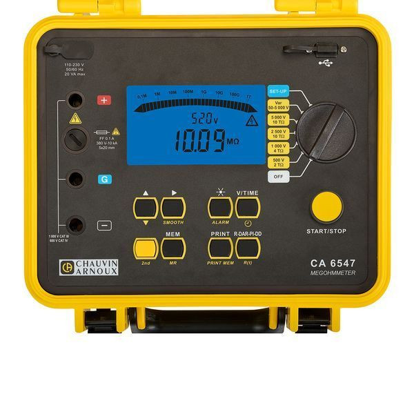 In seinem robusten, baustellentauglichen Gehäuse ist der CA 6547 das optimale Instrument für die quantitative und qualitative Prüfung von Isolationen. Gleichzeitig zum Isolationswiderstand zeigt der Prüfer auch Spannungen, Kapazitäten und Restströme an. Zusätzlich verfügt dieses Modell über einen Messwertspeicher und eine USB-Schnittstelle zur Gerätebedienung und Datenauswertung über die Software Megohmmeter.
